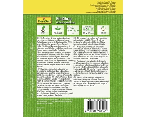 | Botanischer Name | Ocimum basilicum 'Einjährig' |