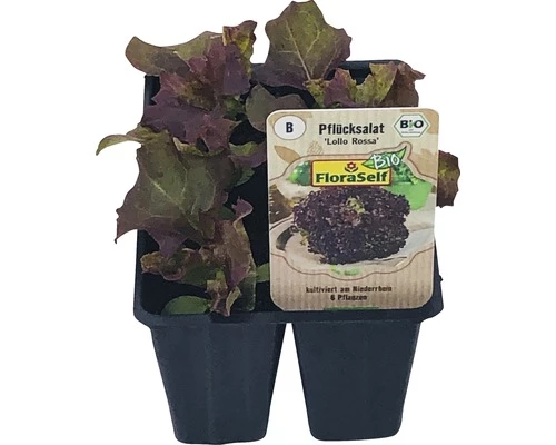 Produktmerkmale der FloraSelf Bio-Salatpflanzen Lollo rossa von Flo & Floralie