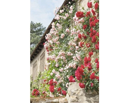 Diese attraktive Zusammenstellung verschiedener Rosen präsentiert sich mit einer großen Farben- und Formenvielfalt. Ein Traum für jeden Rosenliebhaber. Eine Kletterhilfe wie Pergola, Rankgitter o.ä. ist erforderlich.