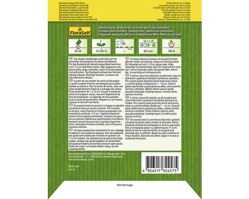 Aus diesen Saatbändern entwickelt sich ein kompletter Kräutergarten für Beete und Balkone. Richten Sie für das Saatband ein feinkrümeliges Beet her und ziehen Sie 1 bis 1,5 cm tiefe Rillen. Schneiden Sie das Saatband auf die gewünschte Länge zu, bedecken Sie es leicht mit Erde und drücken Sie es an. Wässern Sie das Saatband während der Keimzeit ständig. Diese Kräutersamen benötigen einen lockeren, humosen und nährstoffreichen Boden.