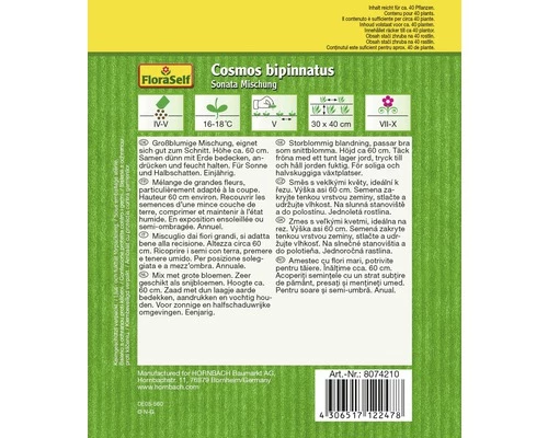 | Botanischer Name | Cosmos bipinantus 'Sonata Mischung' |