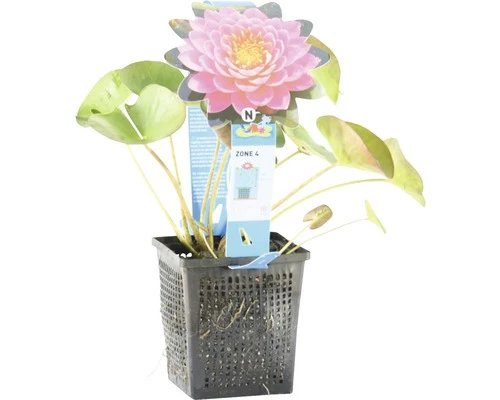 Die mehrjährige, nicht immergrüne Seerose Nymphaea-Cultivars ‚Fire Opal‘ von FloraSelf beeindruckt mit rosafarbenen Blütenpracht, zeigt sich winterhart und braucht Halbschatten.