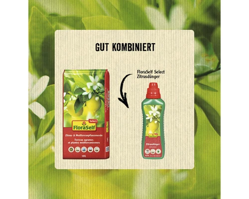Mineralischer Volldünger von FloraSelf Select mit wertvollen Spurennährstoffen speziell für Zitrusfrüchte. Vor Gebrauch schütteln!